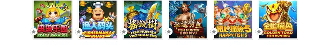 Insect Paradise, Fishermans Wharf, Fish Hunting: Yao Qian Shu, Fish Hunting: Li Kui Pi Yu, Fish Hunting: Happy Fish 5, Fishhunting:goldentoad, Fish Hunting: Da Sheng Nao, Fish Hunter Spongebob, Fish Hunter Monster Awaken, Fish Haiba, Fish Hunter 2 Ex - Pro, Fish Hunter 2 Ex - Novice, Fish Hunter 2 Ex - Newbie, Fish Hunter 2 Ex - My Club, Bird Paradise.